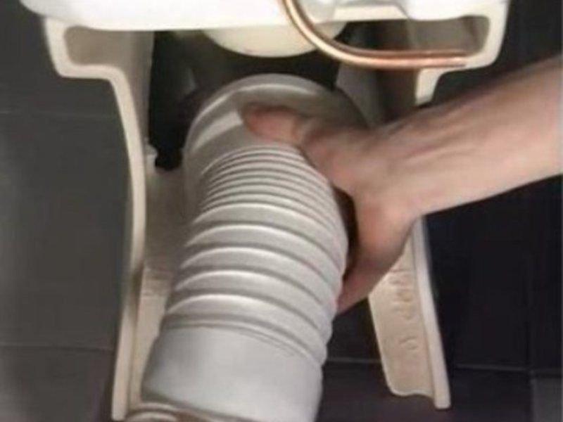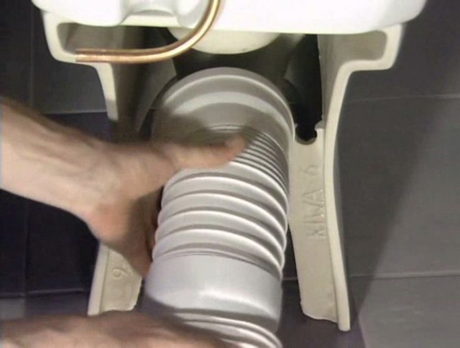 - Insérez l'ondulation dans le tuyau des toilettes, rien n'est nécessaire pour lubrifier la connexion.