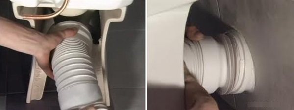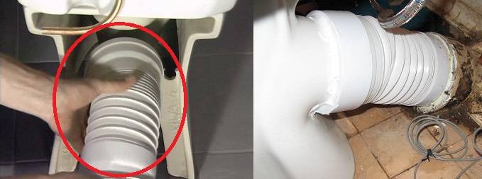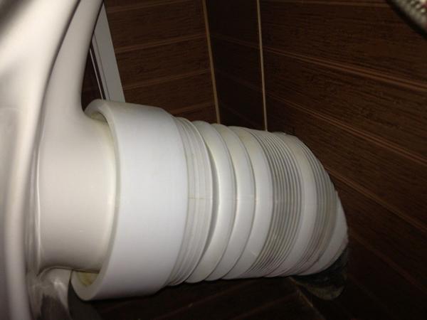 Dans ce cas, des spécialistes qualifiés recommandent de raccorder l'appareil à une colonne montante verticale à l'aide d'un manchon d'étanchéité ou d'une ondulation. Des spécialistes qualifiés recommandent de traiter la connexion créée avec du silicone liquide. Cela aidera à prévenir les fuites ou les odeurs désagréables dans la salle de bain.