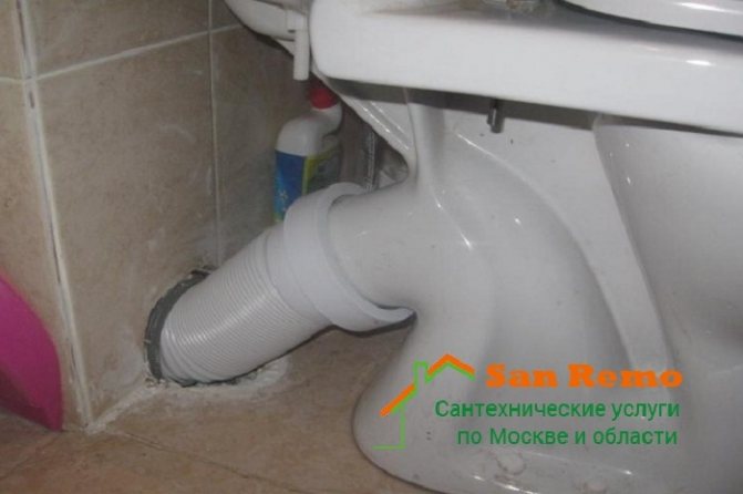 Pour une résistance maximale au stress, la durabilité de la connexion créée, vous devez d'abord nettoyer très soigneusement les restes de la solution de la prise. Si les toilettes doivent être éloignées de l'ouverture du système d'égout, vous devrez utiliser des tuyaux ondulés.