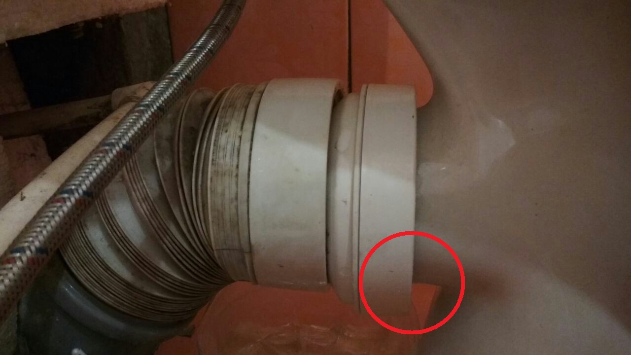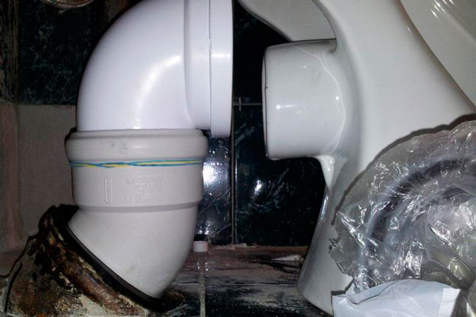 Nous traitons avec du mastic ou du silicone l'assemblage du tuyau de vidange en plastique de la cuvette des toilettes et de l'égout. De plus, la sortie doit être bloquée par une sortie de 60 mm.