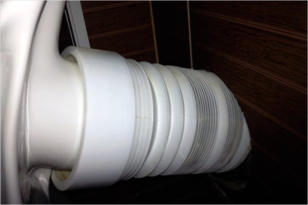 - Un tuyau ondulé est inséré dans l'entrée du système à une extrémité et l'autre extrémité est reliée aux toilettes.