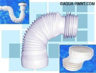 Les communications de ce groupe sont en thermoplastique.Le tuyau pèse peu, peut être installé à la main. Un côté a une manchette. Il y a un joint en caoutchouc dans cette zone. Le brassard se connecte à la sortie des toilettes et est relativement court. La longueur du produit varie en fonction de la position des anneaux de renforcement: de 23 à 50 cm, ce qui vous permet de modifier les paramètres en fonction de l'emplacement de l'appareil sanitaire et de la colonne montante d'égout dans les toilettes.