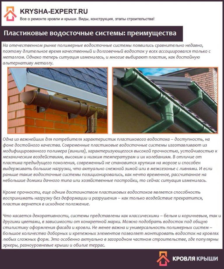 Les plus populaires sont les gouttières industrielles en métal ou en plastique conçues systématiquement par des fournisseurs russes et étrangers.L'abondance de toutes sortes de solutions pour les compagnons, les adaptateurs, les fixations, la facilité d'installation, la possibilité d'installer un tel drain de vos propres mains assure leur popularité stable auprès des acheteurs. L'avantage incontestable est également la transparence des prix, car il existe une liste de prix élément par élément pour tous les composants du système. Estimer les coûts approximatifs acheter tout le matériel nécessaire pour l'installation d'un drain pour un toit est à la portée de tous.
