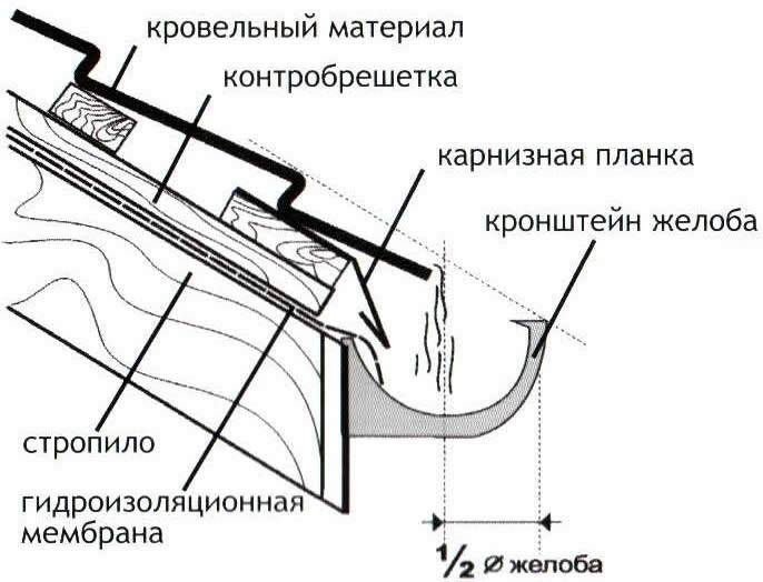 Le surplomb du toit est placé sur la gouttière à une distance de 30 à 50% de son diamètre.