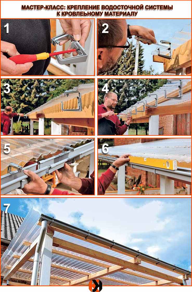 Toiture fiable - les tuiles métalliques, le polycarbonate et d'autres matériaux rigides et durables vous permettent de fixer les éléments de gouttières au toit directement sur la toiture à l'aide de pinces spéciales.