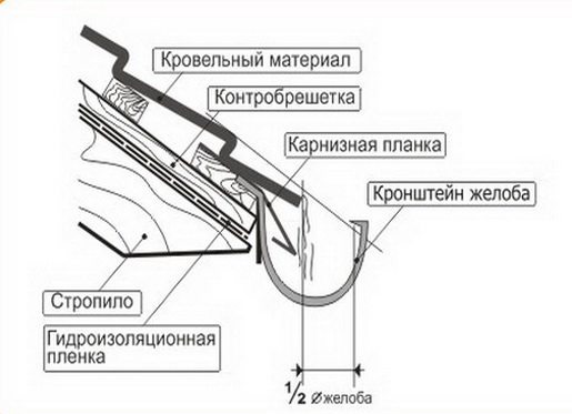 Important! Avec toute l'évidence et la commodité, il est impossible de fixer le drain aux surfaces d'extrémité des chevrons, car les attaches passeront le long des fibres de bois et la fiabilité du maintien des attaches à fixer sera extrêmement faible