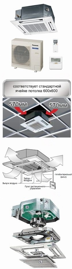 Qu'est-ce qu'un climatiseur à cassette: installation et installation, dimensions et schéma de connexion
