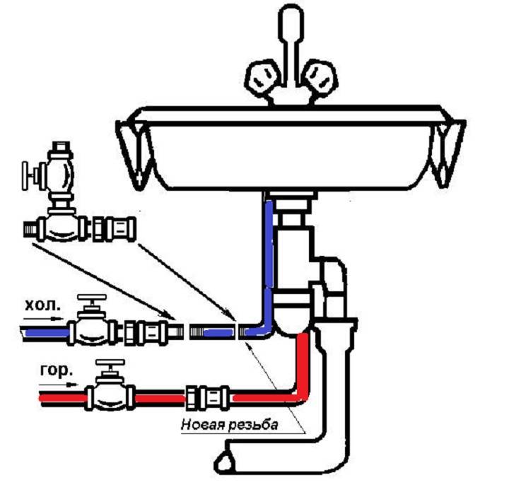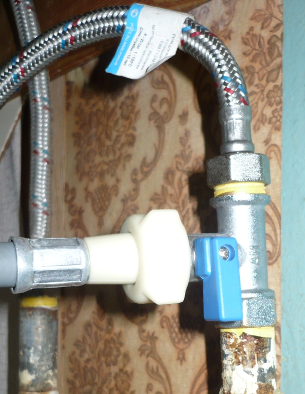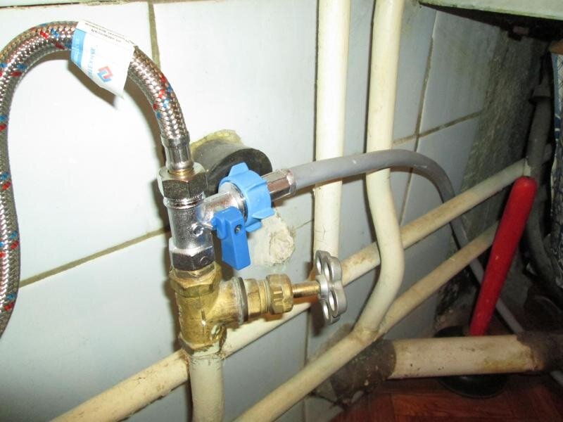 - de plus, un flux est enroulé sur les deux fils restants et des tuyaux flexibles d'une machine à laver et d'un robinet de lavabo sont connectés ;