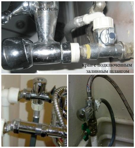 L'installation d'un robinet de machine à laver sur un robinet est une solution relativement peu coûteuse et simple, mais elle crée une contrainte supplémentaire sur l'équipement de plomberie et n'est pas recommandée pour une utilisation permanente.