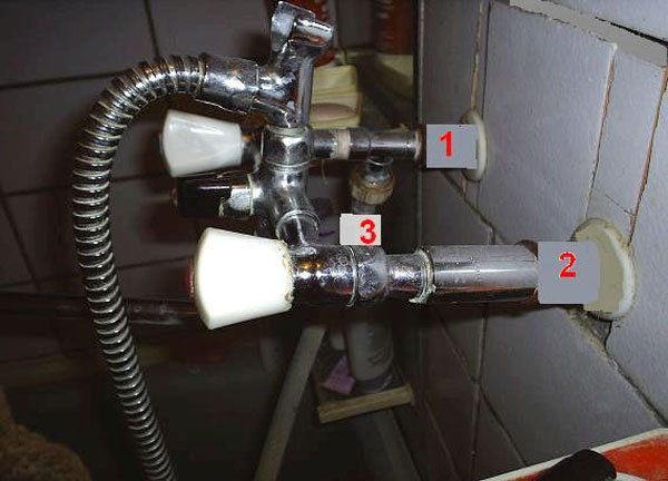 Lorsque la grue est allumée avec un tel agencement, un mélange se produira nécessairement, c'est-à-dire le débit d'eau froide dans le tuyau d'eau chaude. En conséquence, la qualité de l'approvisionnement en eau chaude de l'appartement voisin peut se détériorer. Le problème pourrait être résolu en installant des clapets anti-retour devant le mitigeur, mais pendant le lavage (c'est-à-dire pendant plusieurs heures), il ne sera pas possible d'ouvrir les mitigeurs.