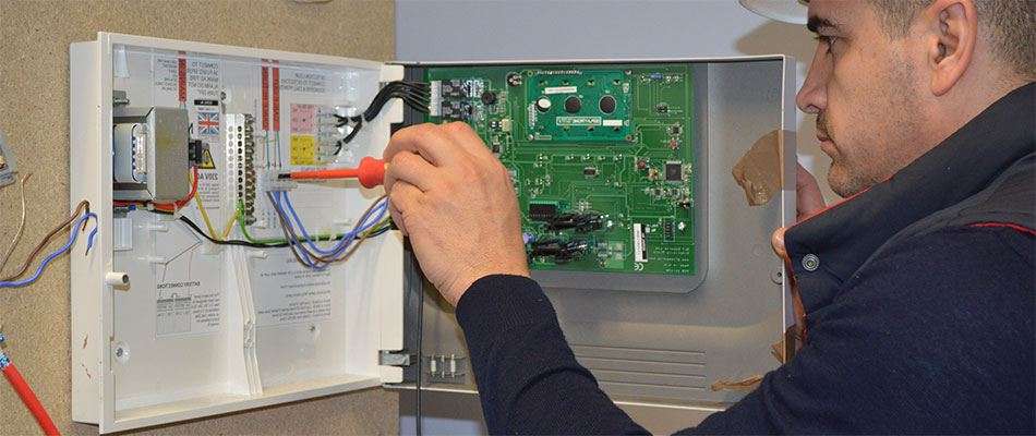Le spécialiste effectue une enquête sur le système d'alarme existant pour le développement de projets, la modernisation des équipements.