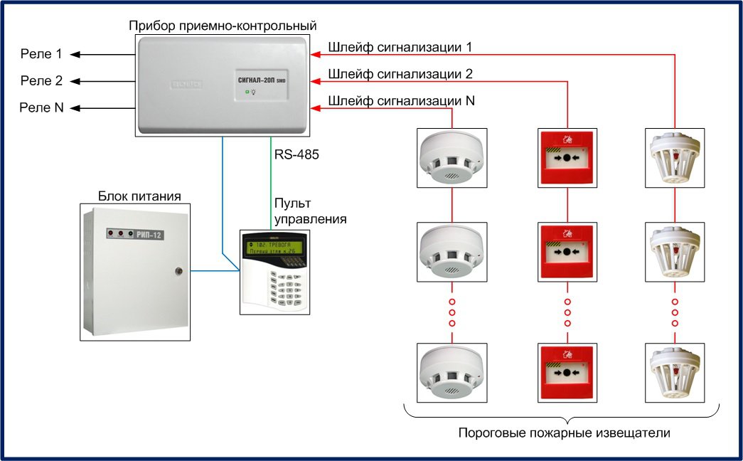 Schéma de fonctionnement de l'installation des détecteurs d'incendie