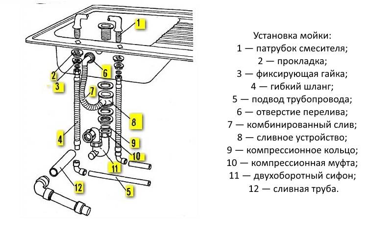 • fort serrage des attaches. Si vous ne calculez pas la force lors de la torsion des fixations de l'évier, vous pouvez diviser le bol. Un serrage fort des écrous des tuyaux d'eau et du siphon endommagera les joints en caoutchouc, ce qui entraînera des fuites;