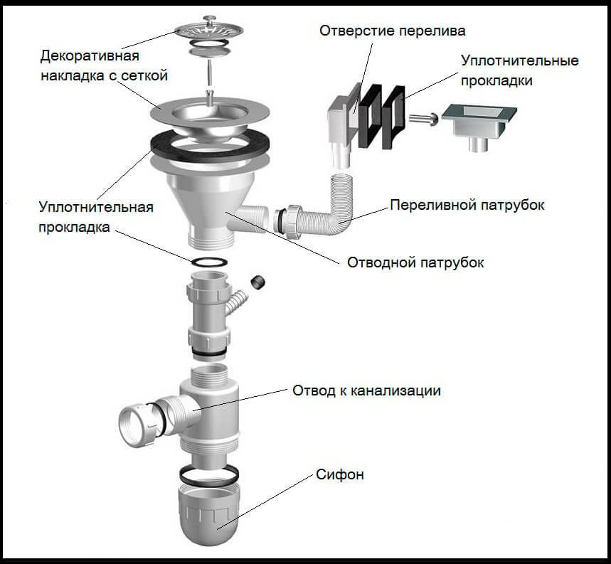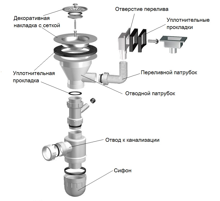 Comment assembler un siphon d'évier ? comment installer dans la cuisine et la salle de bain, installation et remplacement, comment installer un siphon avec trop-plein et schéma de raccordement, comment changer et démonter, comment installer correctement