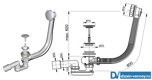 Pour visualiser à quoi les éléments devraient ressembler siphon et comment assembler siphon de baignoire en plastique, regardez cette vidéo :