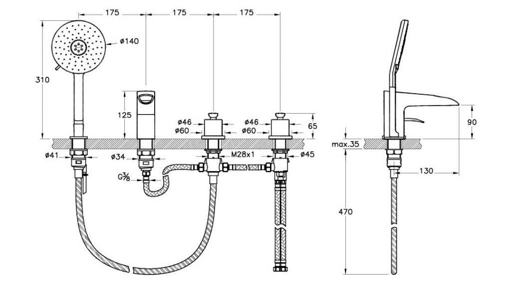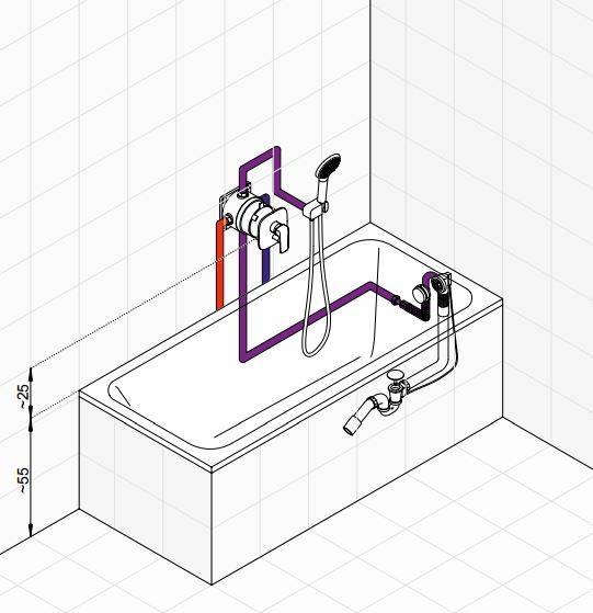 - Marquez l'emplacement de montage sur le mur. Pour cela, la taille des utilisateurs et la longueur du tuyau sont prises en compte (il ne doit pas toucher le bord de la baignoire) ;