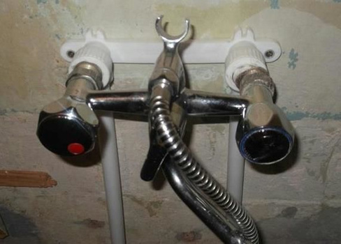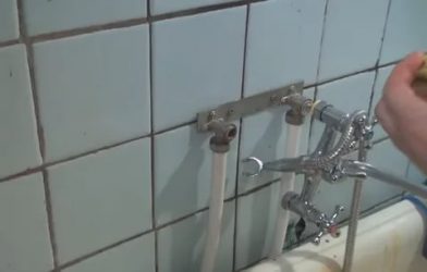 Une fois les tuyaux vérifiés pour la possibilité de leur fonctionnement ultérieur, le mélangeur de la salle de bain est installé sur le mur.