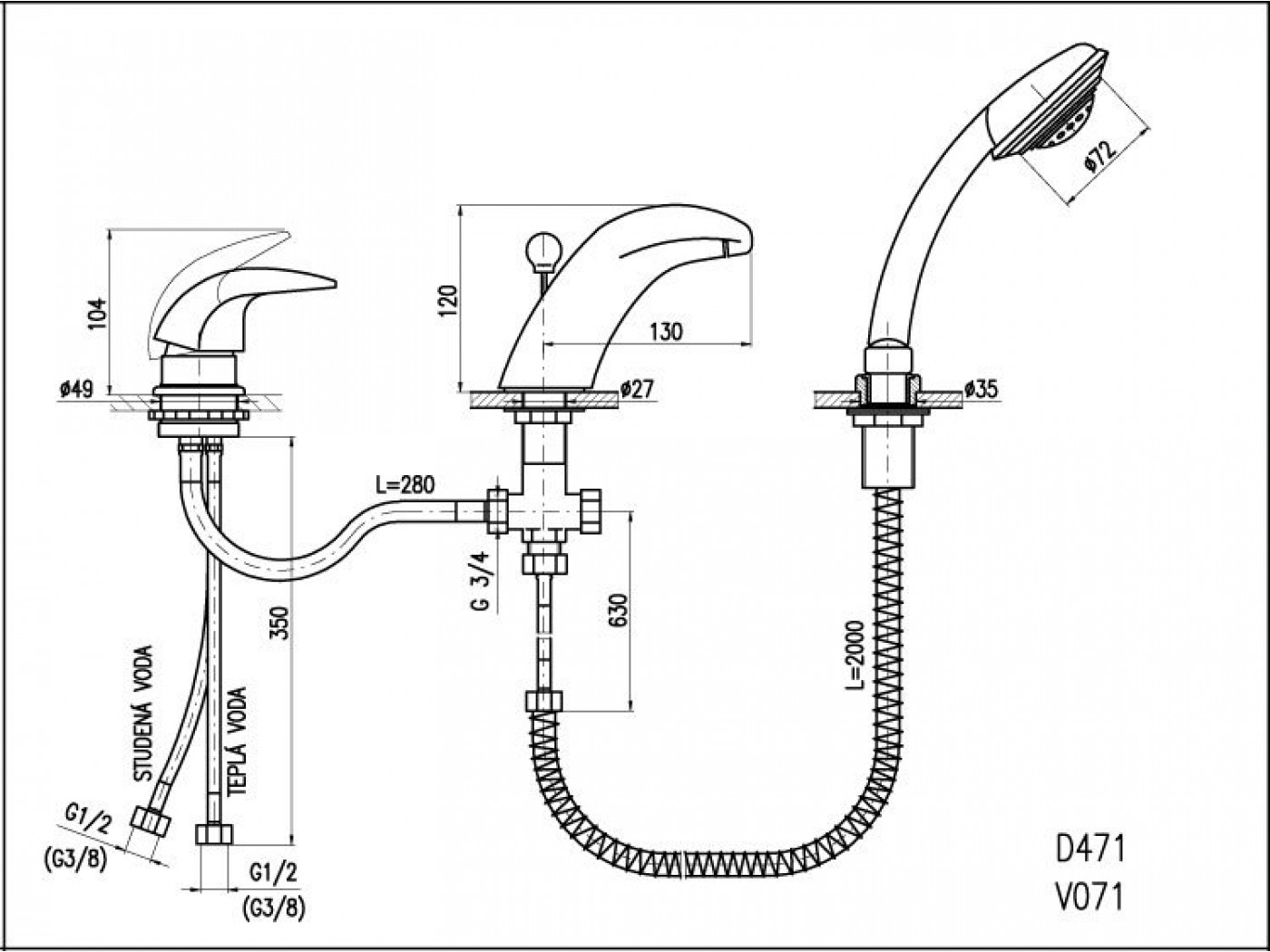 - l'eau chaude est fournie à gauche, l'eau froide à droite ;