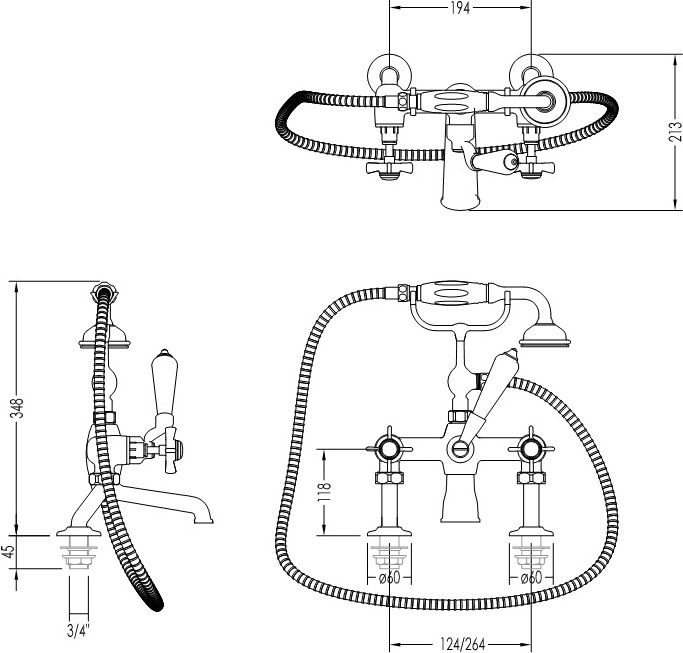 L'option suivante consiste à monter sur le côté de la baignoire. L'avantage ici est que toutes les pièces de rechange seront cachées derrière le corps de la baignoire et que des tuyaux flexibles sont utilisés lors de l'installation, ce qui vous donne la possibilité de les monter dans n'importe quel endroit approprié et pratique pour vous. Mais il y a aussi un petit bémol. Sur les baignoires à l'ancienne, il n'y a pas de place pour installer un mélangeur, cette méthode est donc utilisée dans la plupart des cas pour les baignoires en acrylique de nouvelle génération.