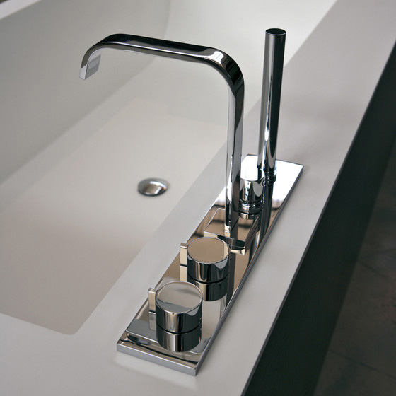 L'emplacement du nouveau produit dépendra de son installation. Par exemple, il est possible d'encastrer le mitigeur ou de le monter au mur. Si nous considérons la première option, elle est intégrée directement dans le mur ou montée à bord de la baignoire. Vous pouvez monter le mélangeur sur le rack. Une telle installation est possible s'il y a de l'espace libre dans la salle de bain ou lorsque des tuyaux sont posés à travers le sol. Les produits les plus chers aujourd'hui incluent les mélangeurs montés en rack, dont le choix est très diversifié.
