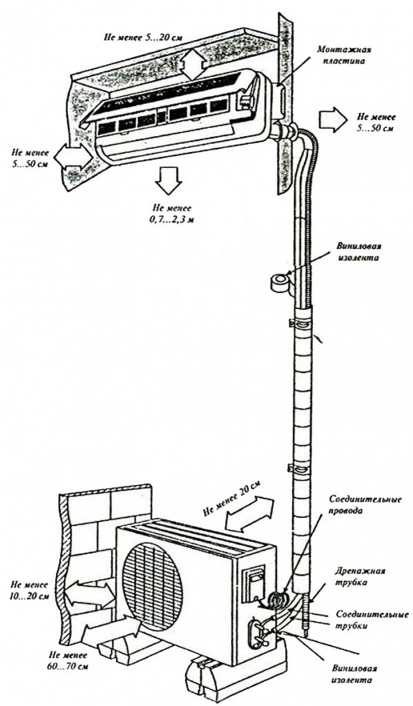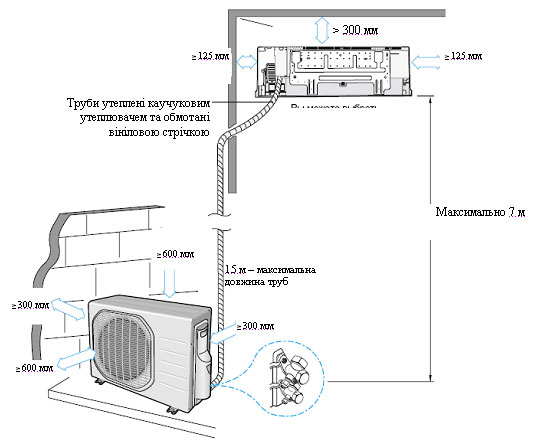 Souvent, le choix de l'emplacement de l'équipement est régulé par la distance minimale et maximale entre ses parties. Ces indicateurs sont principalement indiqués par le fabricant et dépendent de gamme de modèles et caractéristiques systèmes fractionnés.
