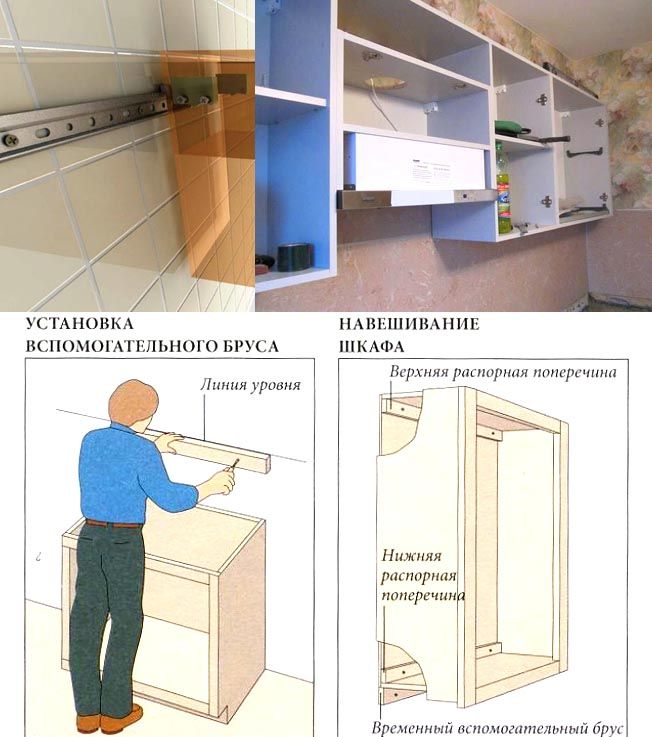 - Tout le monde n'a pas d'armoires murales au-dessus du poêle, craignant qu'elles ne soient rapidement endommagées par la vapeur et l'humidité élevée. De plus, les armoires murales sont généralement étroites, ce qui ne permet pas de monter des hottes larges à l'intérieur. S'il n'y a pas de support intégré, un cadre en forme de U est fixé au mur à partir des coins des chevilles. Cette monture agit comme un support pour le corps.