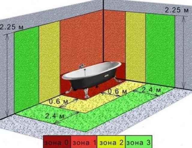La salle de bain a des prises électriques. Il est conseillé de les connecter à un interrupteur séparé. Exigence obligatoire - la distance des bords de la baignoire n'est pas inférieure à 70 centimètres et la présence d'une mise à la terre;