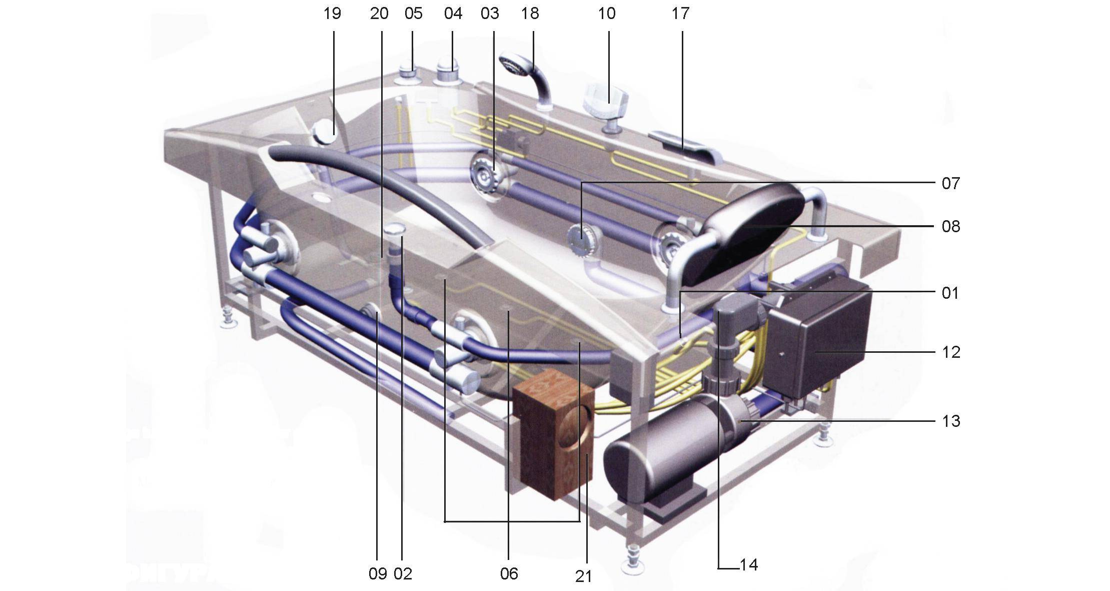 Les principaux éléments de l'équipement d'hydromassage sont également: