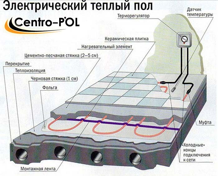 Le dispositif d'un plancher chauffant électrique est réalisé sur une surface préalablement préparée. Toutes les fissures doivent être réparées et apprêtées. De tels travaux permettront à la chaleur émanant des câbles électriques d'être dirigée dans la pièce elle-même, par conséquent, les dalles de plancher ne seront pas chauffées.