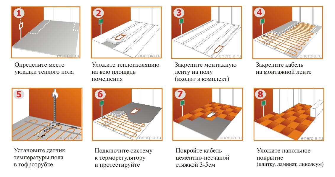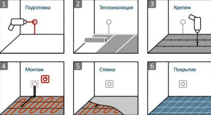 Pour imaginer comment connecter un sol chauffant infrarouge, le processus d'installation peut être divisé en plusieurs étapes: