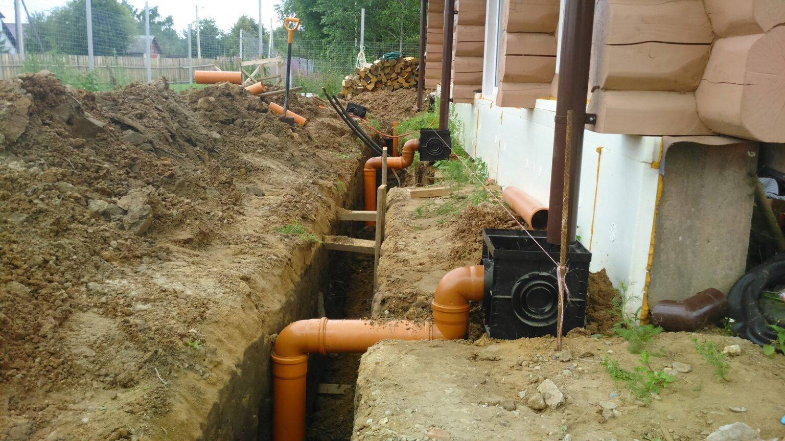 - Paysage du chantier. Pour assurer un écoulement sans entrave des fluides résiduaires, un puisard ou une fosse septique doit être situé au point le plus bas du site.