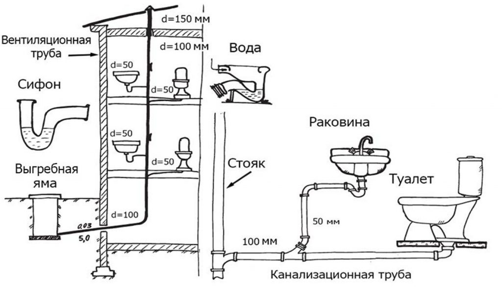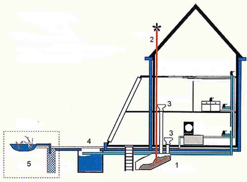 - Construction d'égouts dans une maison privée: schéma de ventilation dans le bain