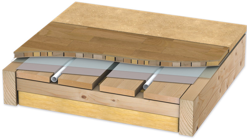 Chauffage au sol avec eau chaude sur plancher bois
