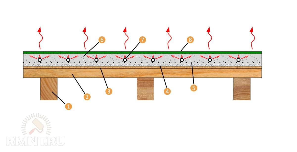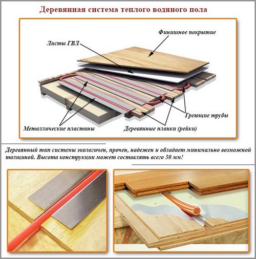 Si vous souhaitez créer un sol chaud dans une maison en bois, un système de chauffage par le sol en bois est utilisé. L'essence de la technologie est la suivante.
