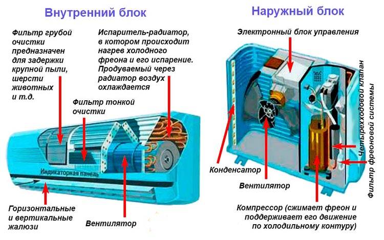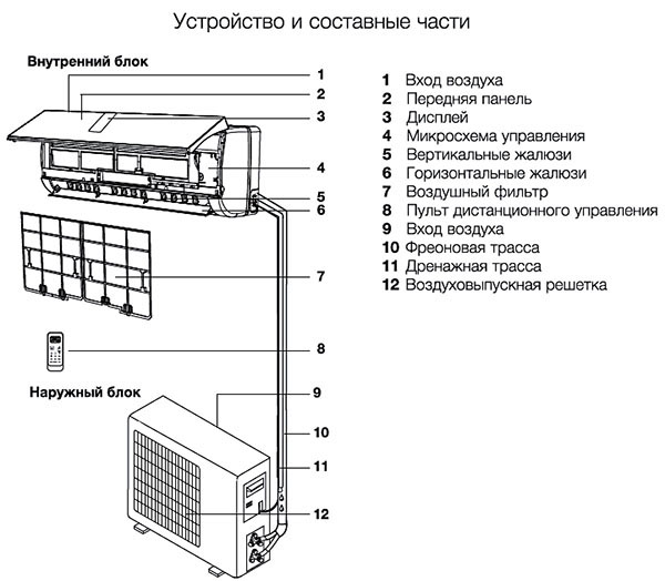 Le climatiseur split lui-même, malgré des dizaines de détails, est ingénieusement simple à utiliser. Le fluide de travail pour le climatiseur, ainsi que pour le réfrigérateur, est le réfrigérant (fréon). Étant à l'état liquéfié, il prend de la chaleur lors de l'évaporation. En raison de l'absorption de chaleur, l'air de la pièce est efficacement refroidi.