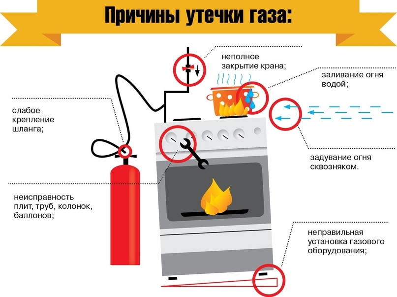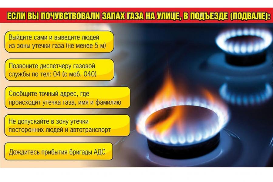Dès l'apparition d'une odeur de méthane, de propane ou de butane, il faut immédiatement couper le carburant en fermant le robinet, et aérer la pièce. À l'heure actuelle, le tabagisme, l'utilisation d'allumettes et d'appareils électriques sont exclus.