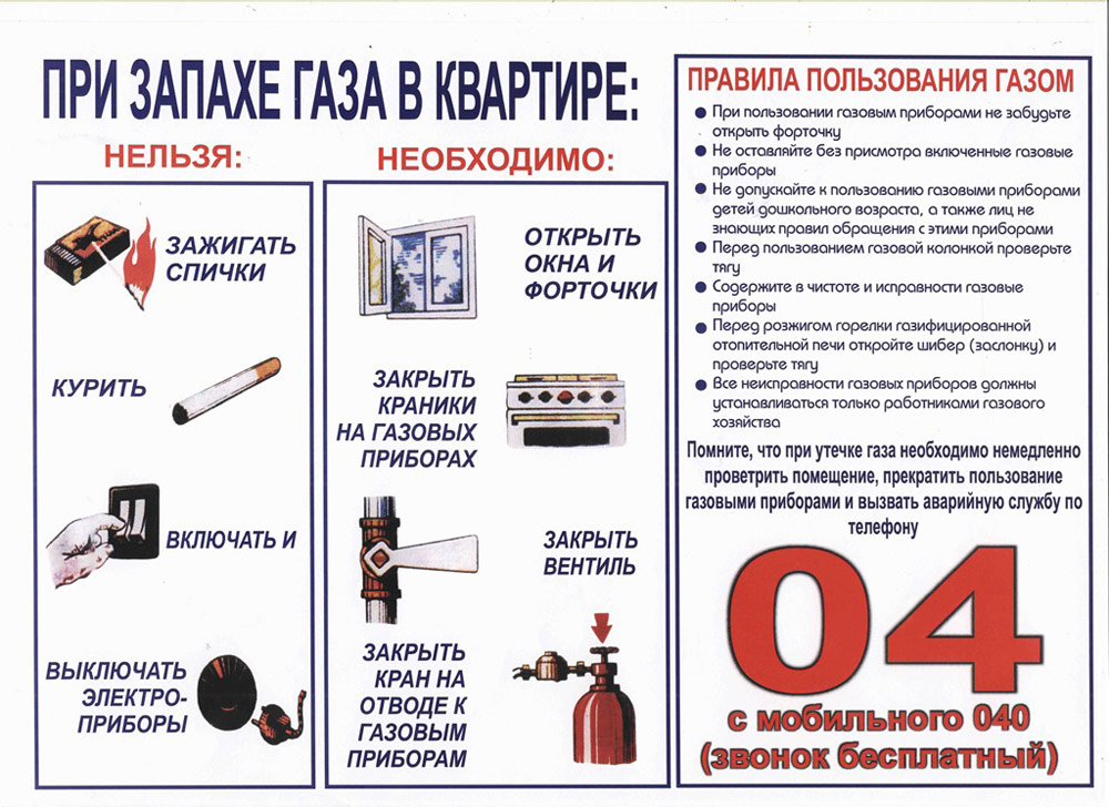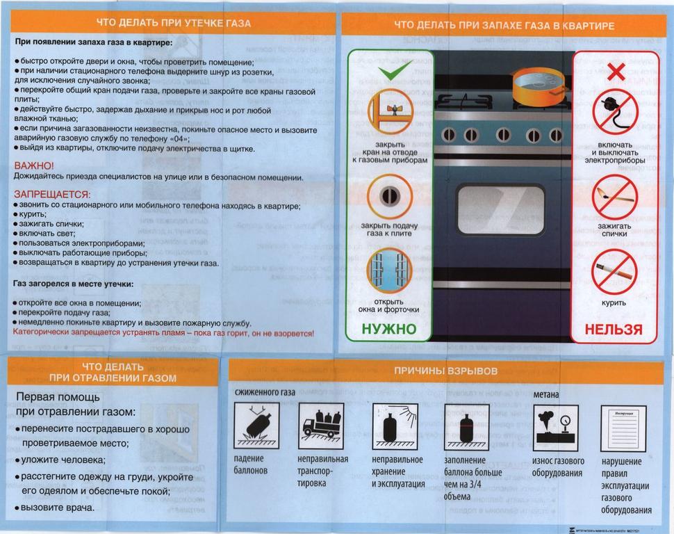 Si vous agissez correctement et rapidement dans des situations extrêmes, vous pouvez éviter de nombreux problèmes. Vous devriez commencer par étudier les règles de fonctionnement des appareils à gaz.