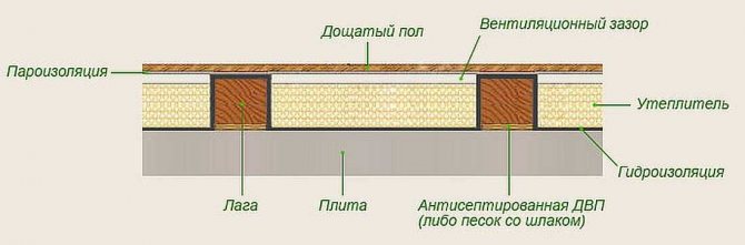 - Brouillon - ce sont des planches fixées sur des poutres, au-dessus desquelles un revêtement de sol isolant est supposé.