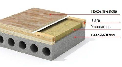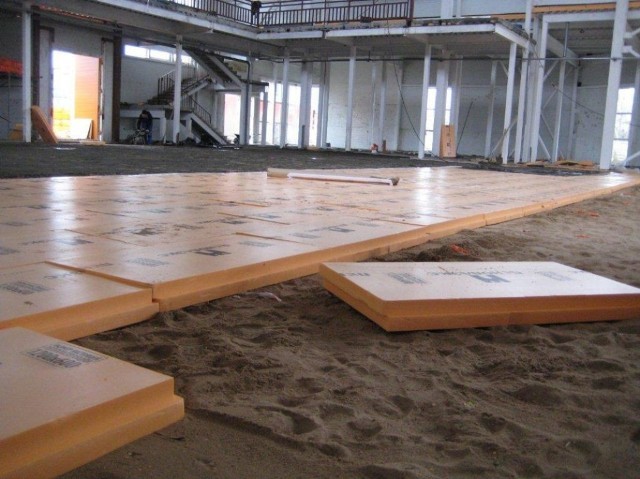 - Si les décalages ne sont pas appliqués. Il est possible de réaliser une isolation thermique sur un sol en béton ou sur un sol en bois brut, en utilisant de la mousse de polystyrène, ecowool. Lors de la pose d'isolant sur béton, il est nécessaire de réaliser une double étanchéité. Ensuite, du polystyrène expansé est posé, une chape est réalisée et le sol final est posé.