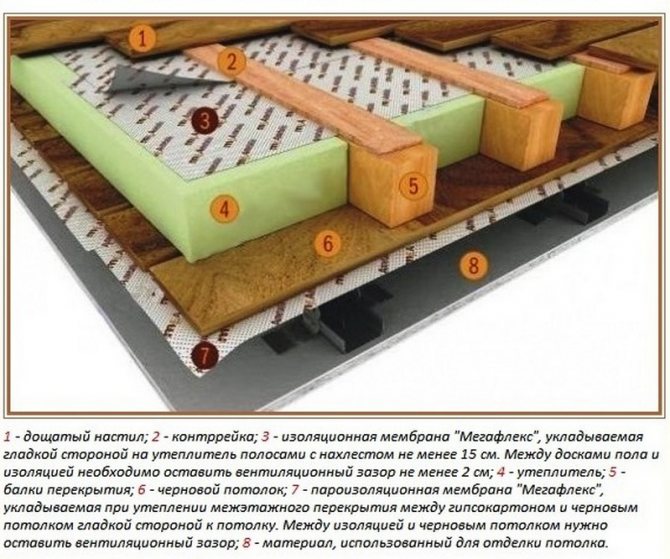 Schéma d'isolation du sol en bois.
