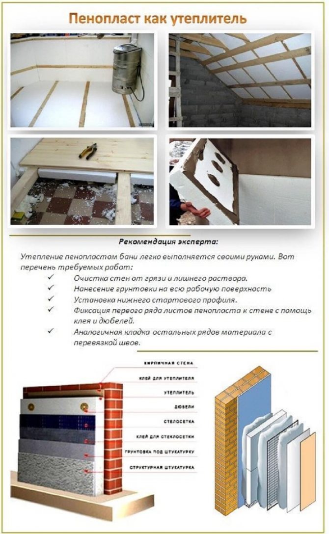 Le polystyrène est un matériau fabriqué à partir de masse plastique sous forme de cellules. Il est produit sous forme de carrés mesurant 1 x 1 m. L'épaisseur de la feuille est de 2 à 10 cm. La densité du matériau varie entre 15 et 25 kg / m2 (la mousse 25 kg / m2 est souvent utilisée pour isoler le plafond). La mousse de polystyrène est souvent utilisée pour isoler les cadres suspendus, les murs et autres revêtements d'une maison privée. Il a de bonnes critiques.