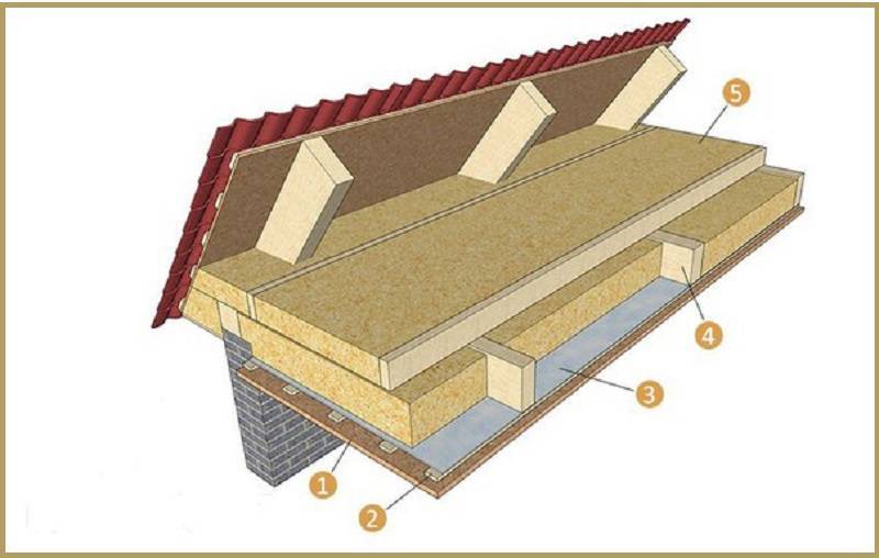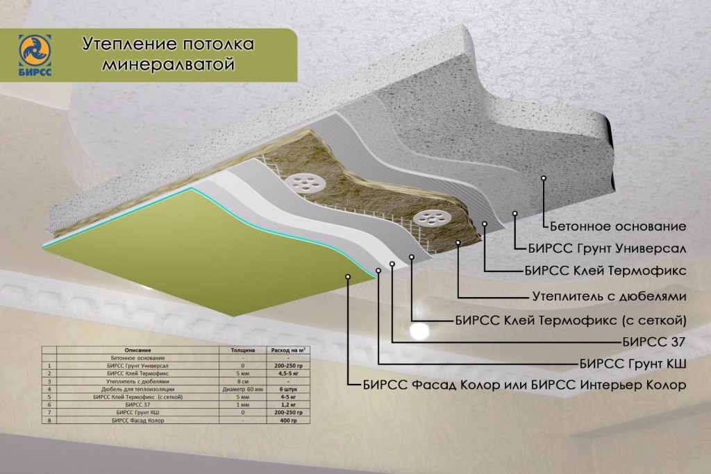 - la résistance thermique du plafond, qui est déterminée par deux indicateurs : l'épaisseur du matériau et sa conductivité thermique (dans le cas où différents matériaux sont utilisés, leurs indicateurs de conductivité thermique sont additionnés) ;