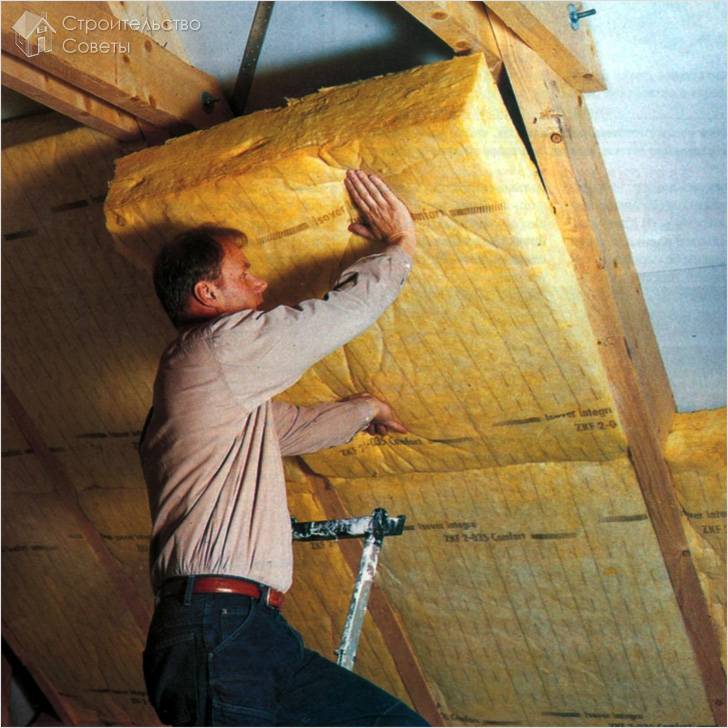 L'une des meilleures options en termes de prix et de performances. Convient pour la pose côté toit et côté pièce. Vous pouvez choisir parmi deux variétés - rouleaux ou assiettes. Ces derniers sont plus faciles à installer, mais nécessitent plus d'opérations et le revêtement isolant sera moins uniforme. Dans les cas où le plafond est isolé de l'intérieur de la pièce, sa hauteur diminuera assez sensiblement, car il faudra poser une couche de 10 à 20 centimètres. Par conséquent, il est préférable de poser du côté du grenier.
