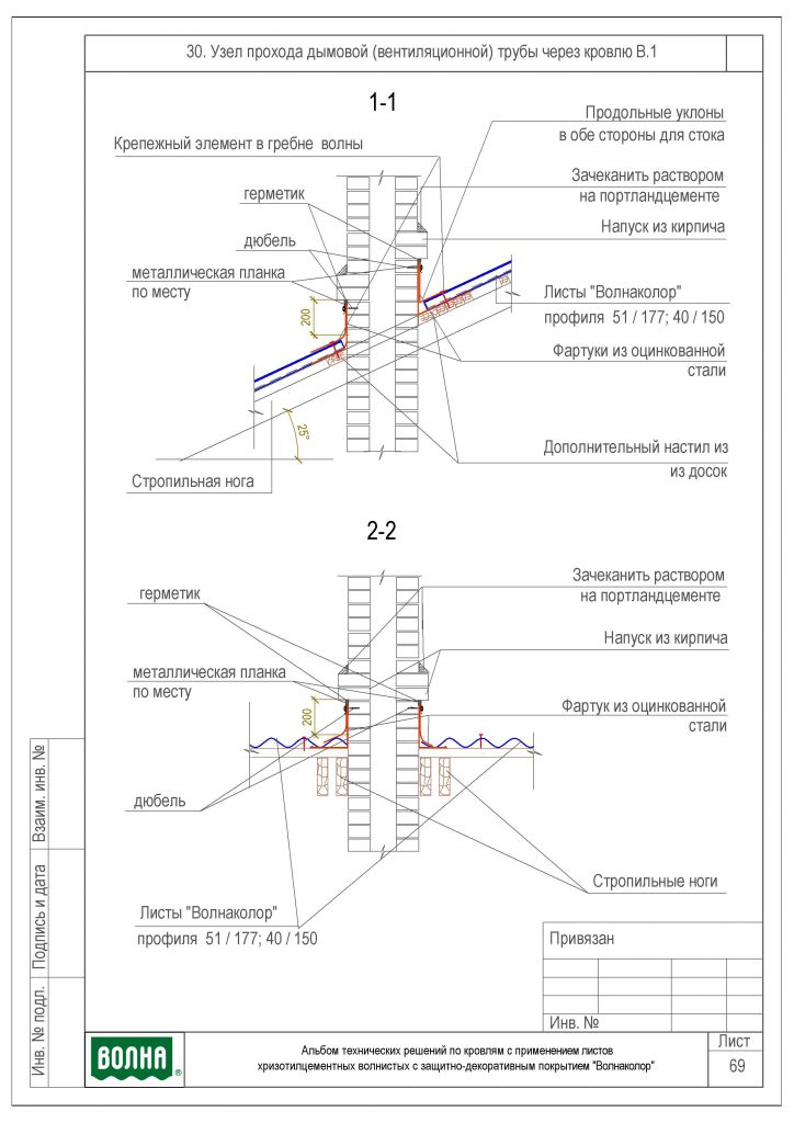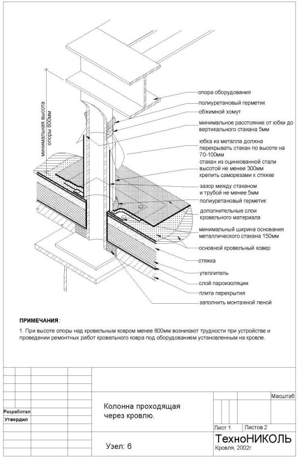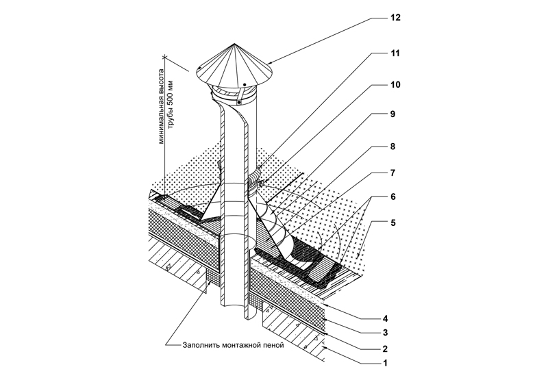 Cet élément ne doit pas être installé à côté de l'anneau de collecte des condensats afin de maintenir l'intégrité de tous les éléments de pénétration. Les modèles de nœuds typiques sont généralement montés avant le début des travaux de toiture : d'abord, les conduits du système de ventilation sont montés, puis le passage, et le toit est ensuite placé.