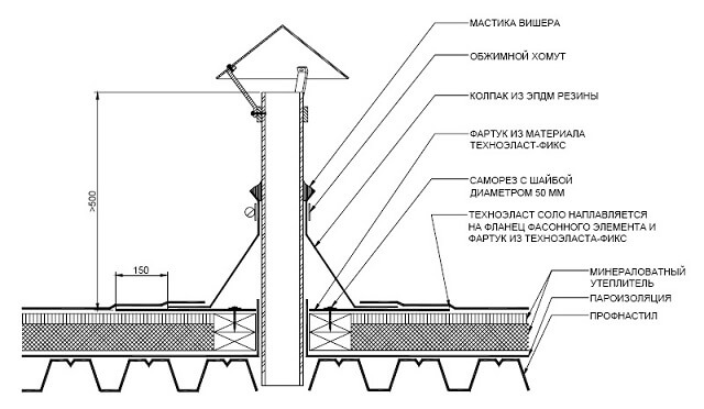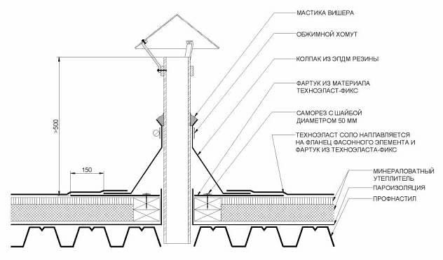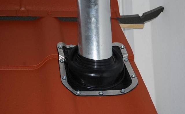 Le passage de la ventilation à travers le toit est un lieu de risque accru de fuite et de fuite.