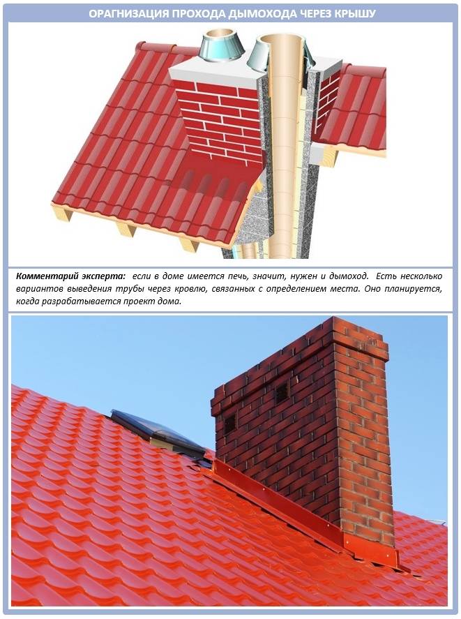 L'ensemble de passage de ventilation de toit peut également être utilisé pour amener d'autres systèmes d'un bâtiment ou d'une structure sur le toit, par exemple, des cheminées (s'il y a un foyer ou un poêle dans la maison) ou des conduits de gaz (s'il y a une chaudière à gaz ou autre équipement similaire). Dans le même temps, il faut tenir compte du fait que dans le cas des pénétrations pour cheminées, elles doivent être équipées d'éléments supplémentaires résistants au feu (par exemple, un conduit). Cela est dû au fait que la température de l'air dans les fours peut atteindre 700 à 800 degrés, ce qui entraîne un fort échauffement du tuyau.