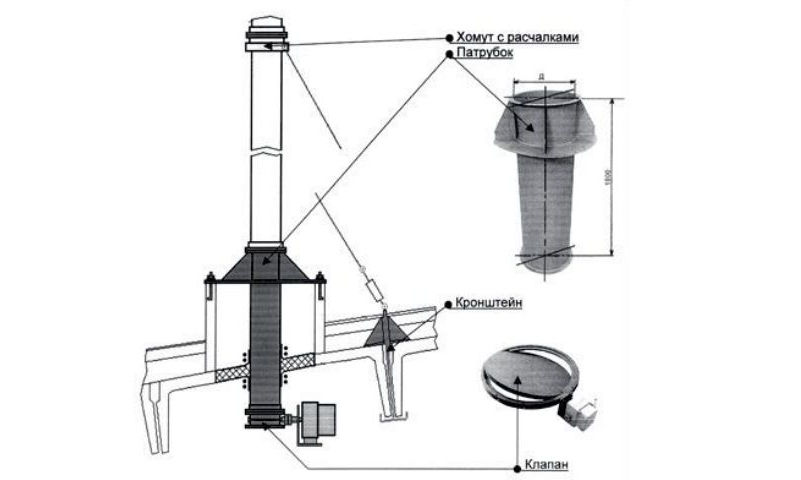 Au stade de l'installation, il est également important de tenir compte de la hauteur de la gaine au-dessus du toit. Un indicateur trop bas affectera négativement la traction, et trop haut sera exposé à des rafales de vent et se déformera rapidement