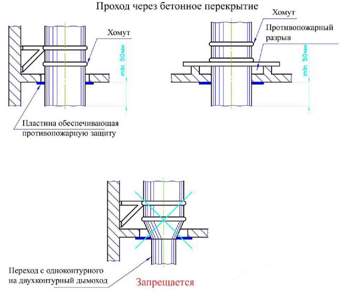 Les unités de pénétration pour les communications de ventilation de la production industrielle sont réalisées conformément aux exigences de GOST-15150. On pense que la température de l'air à l'intérieur du tuyau de communication ne doit pas dépasser 80 degrés et que l'humidité du flux doit être inférieure à 60%.