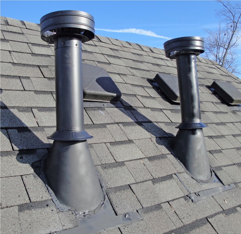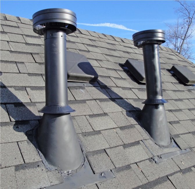 Le plus souvent, dans la construction de logements privés, les conduits de ventilation de la salle de bain, de la cuisine et du salon traversent le plafond jusqu'au toit. La ventilation du toit, se terminant par un tube qui s'élève au-dessus du toit, peut fournir un tirage d'air efficace. Cette méthode de disposition des conduits de ventilation rend l'air de la maison propre, car toutes les odeurs désagréables sortent par la pénétration dans la rue.