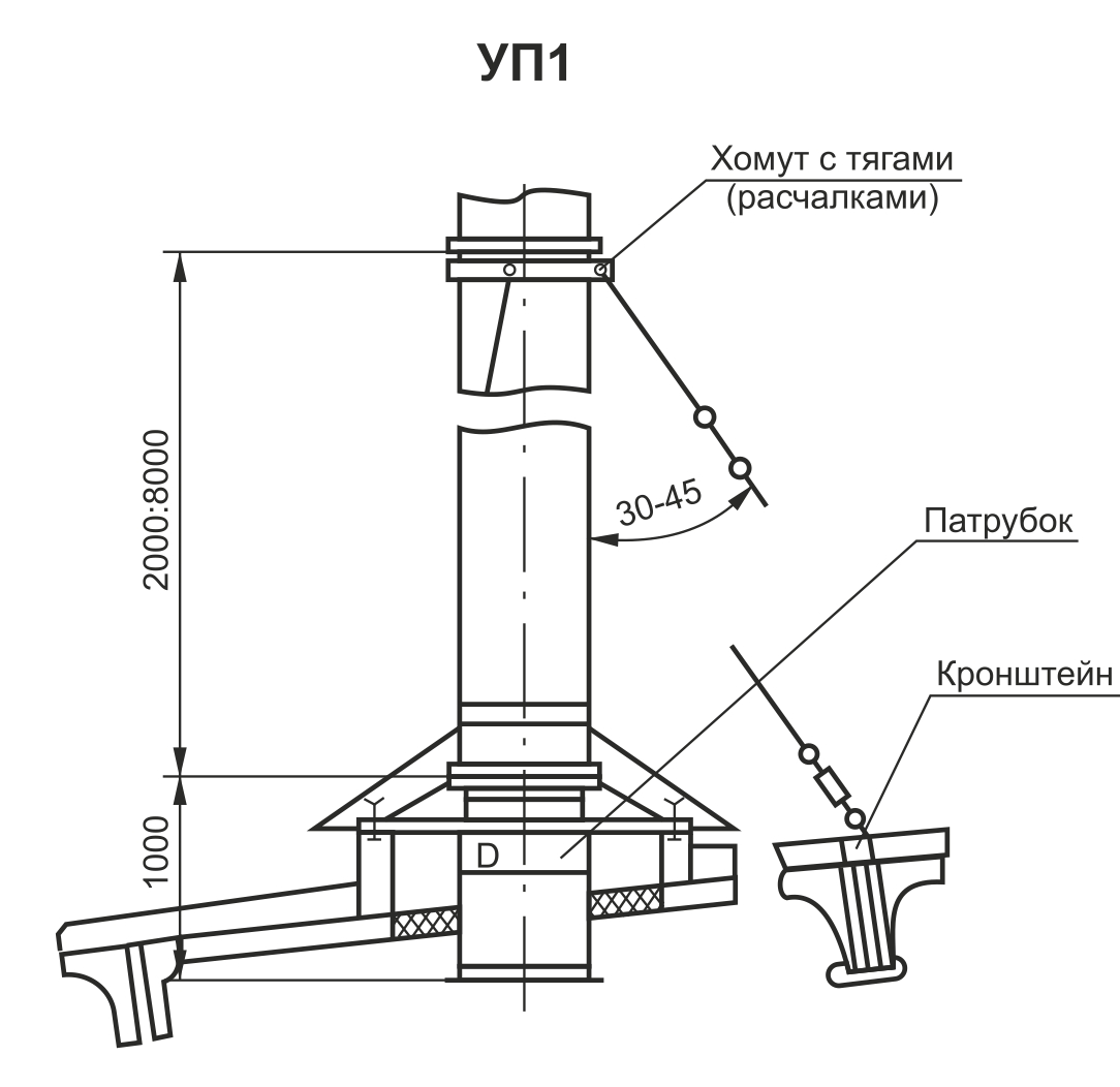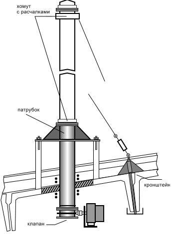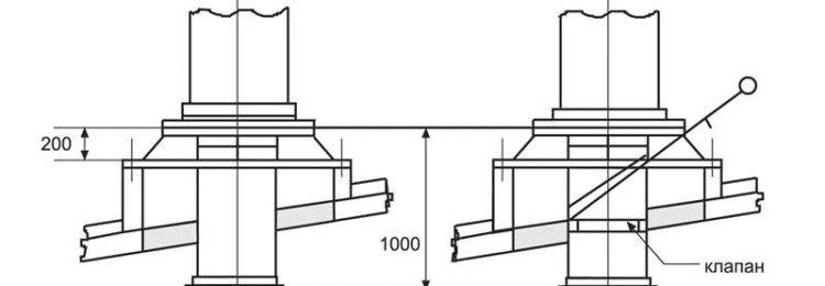 La hauteur optimale du tuyau est de 0,5 m à 1,5 m.La sortie est située entre les chevrons, afin de ne pas violer leur intégrité et de laisser une distance de 15 à 25 cm d'eux.
